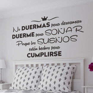 Colección de vinilos ideales para pared. Adhesivos para pared de fácil aplicación y de gran calidad que se complementaran de forma ideal con el diseño interior de tu casa, oficina o apartamento. La decoración de las paredes siempre ha sido tarea difícil, es por ello que, nuestros vinilos y pegatinas de paredes te permitirán decorar las estancias completamente a tu gusto y de una forma personalizada. Vinilos adhesivos para paredes de cualquier estancia o lugar que desees dar personalidad. Gracias a estos autoadhesivos para pared con nombre o número podrás darle alegría y color a las habitaciones de la casa. Deja atrás esa decoración de paredes, aburrida y monótona, convirtiendo la estancia en un lugar nuevo y original, donde poder pasar muchas horas a lo largo del día y no sentirse cansado o frustrado. En nuestro catálogo encontraras una amplia gama de adhesivos para pared para que puedas escoger el que mejor se adapte a tus necesidades a la hora de elegir una bonita decoración para paredes. Si quieres cambiar la decoración de las habitaciones de casa, nuestras pegatinas de paredes y vinilos adhesivos de pared son la mejor opción para dotar de dinamismo y cambio radical a la decoración del hogar, además de poder hacerlo de una forma económica y asequible. DECORA TUS PAREDES DE UNA FORMA PRÁCTICA E INNOVADORA Pegatinas para paredes con diseños originales, únicos y de gran diversidad temática; de frases famosas, personajes animados, películas, música que cambiarán por completo el concepto de decoración para paredes, sobre todo, la decoración de paredes infantiles. Ninguna de las pegatinas para paredes dejará indiferente a nadie. Déjate llevar por tu imaginación y decora completamente a tu gusto cualquier rincón o estancia de tu hogar. Populares vinilos autoadhesivos para paredes disponibles en distintos tamaños para un decoración espectacular y personalizada. Nuestros vinilos son de fácil aplicación y podrán adherirse en cualquier superficie plana y lisa. Dota de un carácter individual las paredes de tu hogar a un coste bajo. ¡Cambia completamente el concepto de decoración de paredes con estas pegatinas y vinilos adhesivos! La instalación de nuestros productos para decoración de paredes es muy fácil. Por otra parte, también se adaptan a todo tipo de ambientes no teniendo problemas en cuanto a durabilidad. Vinilos adhesivos pared de gran calidad que no dejan restos ni residuos al retirarlos en caso que quieras dotar la estancia de una nueva decoración. Originales y creativos diseños que te permitirán cambiar fácilmente la decoración de tu hogar, harán de tu estancia un sitio nuevo y diferente para que te sientas cómodo y cambies las clásicas paredes blancas. Encuentra todo tipo de temáticas para tener la que mejor se adapte a tus necesidades.